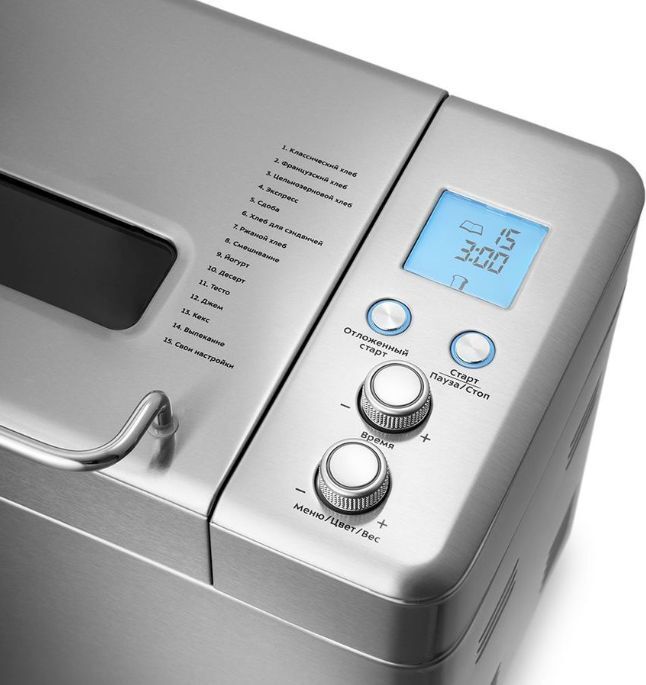 Мощность 550 Вт. Максимальный вес выпечки 1000 г. Количество размеров выпечки 500/750/1000 г. Регулировка веса выпечки есть. Программ приготовления 15. Выбор цвета корочки есть. Поддержание температуры есть. Антипригарное покрытие формы да. Варенье, джемы да. Материал корпуса нержавеющая сталь.