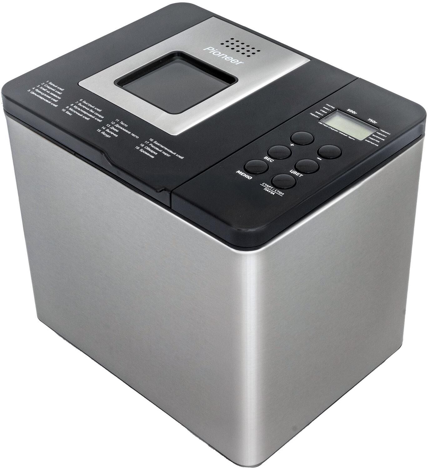 Электрическая хлебопечка 19 программ Мощность 600Вт Выбор веса выпечки 500-750г 3 цвета корочки хлеба LСD-дисплей Корпус из нержавеющей стали Форма для выпечки с антипригарным покрытием Таймер на 15 часов Автоподогрев 60 мин Приготовление йогурта и джема Книга рецептов