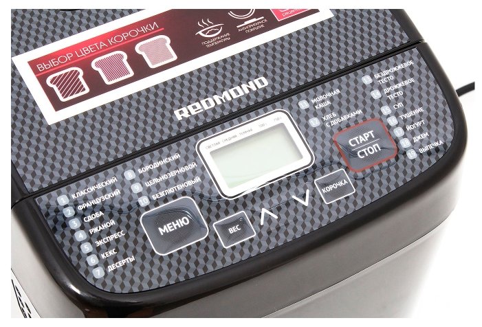 выбор цвета корочки, таймер, регулировка веса выпечки, замес теста, ускоренная выпечка