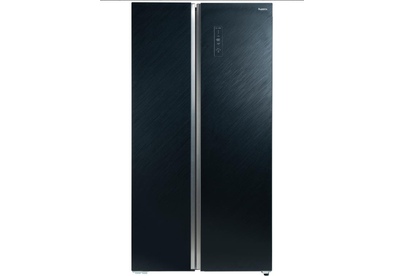 Холодильник Side-by-side с текстурированным черным стеклом • система Full No Frost • Dual Inverter: инверторные компрессор и вентилятор • дисплей на двери • система распределения воздушных потоков MultiFlow • класс энергоэффективности А++ • деодорирующий фильтр Nano Ag+ • габариты 178,5x91,3x67см • объем 541/343/198л