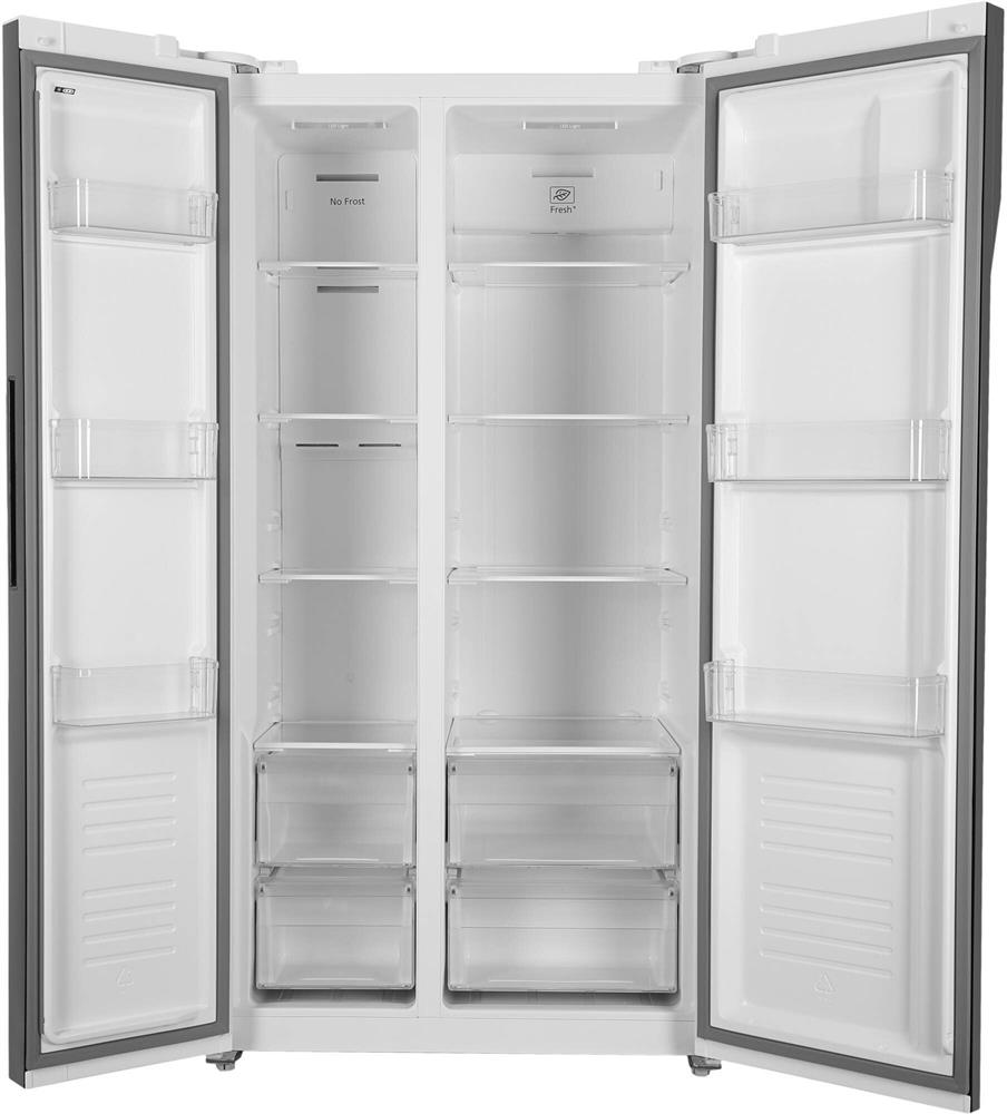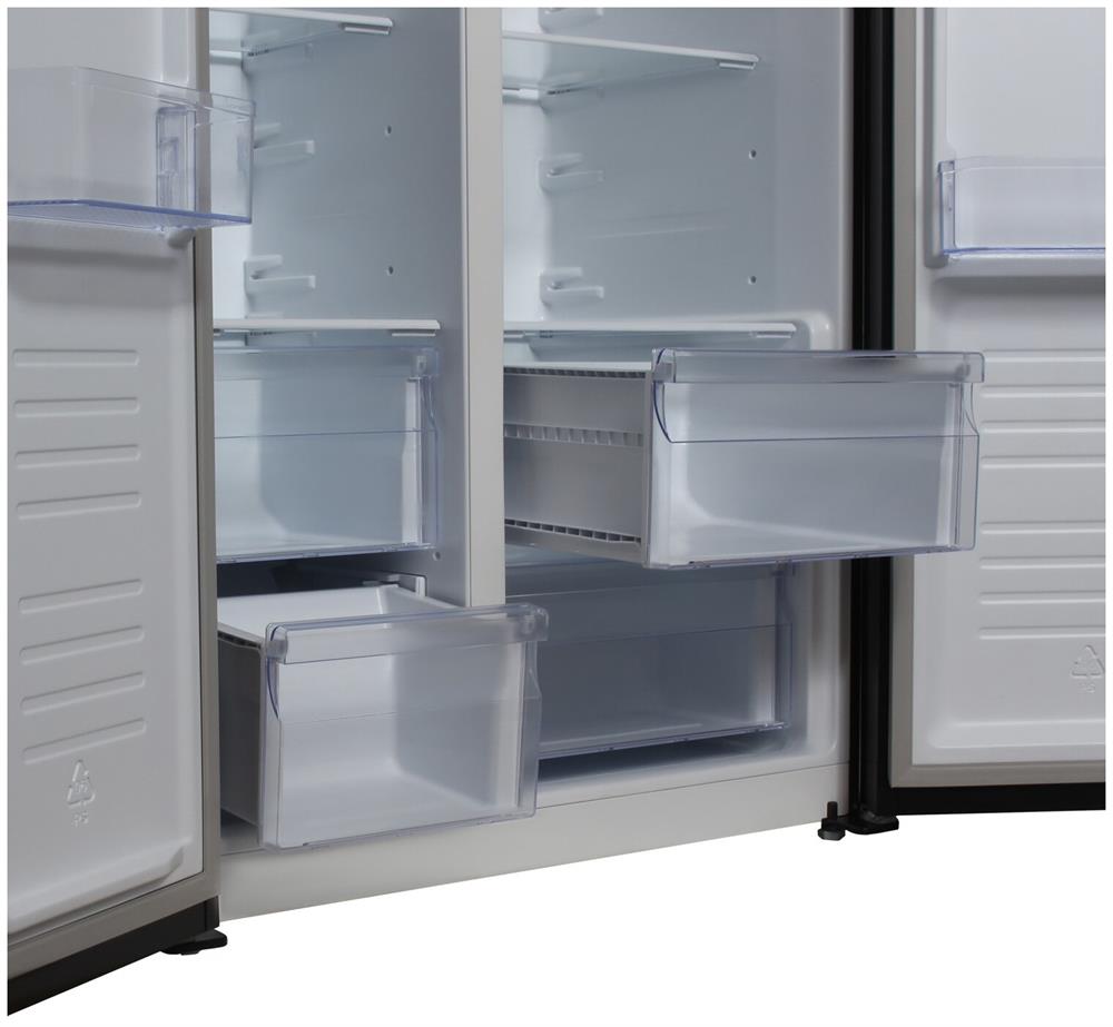 Холодильник Side-by-Side. Полезный объём: 496 л. Полезный объем холодильной камеры: 331 л. Полезный объем морозильной камеры: 165л. Система размораживания Total Nofrost. Тип управления: сенсорное управление (внешний дисплей). Уровень шума 43dB(A). Класс энергопотребления: А+. Цвет: белое стекло. Инверторный компрессор. Габаритные размеры без упаковки в*ш*г, см: 178.0*91.1*63.6. Вес нетто/брутто : 91/101. Гарантия 2 года