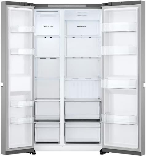Side by Side | Объем 658л | 913 × 1790 × 735 мм | Серебристый: Total No Frost, Умный инверторный компрессор, Многопоточная система охлаждения Multi Air Flow, Общий объем (л) 703. Общий объем морозильной камеры (л) 271. Общий объем холодильной камеры (л) 432. Полезный объем (л) 658. Полезный объем, морозильная камера (л) 206. Общий полезный обьем морозильной камеры (2 звезды) (л) 30. Объем хранения в холодильнике (л) 422. УРОВЕНЬ ЭНЕРГОЭФФЕКТИВНОСТИ A+. Внутренний LED дисплей Inner Top Display. Потребление энергии (кВч/в год) 420. Уровень шума (дБ) 36. Умная диагностика
