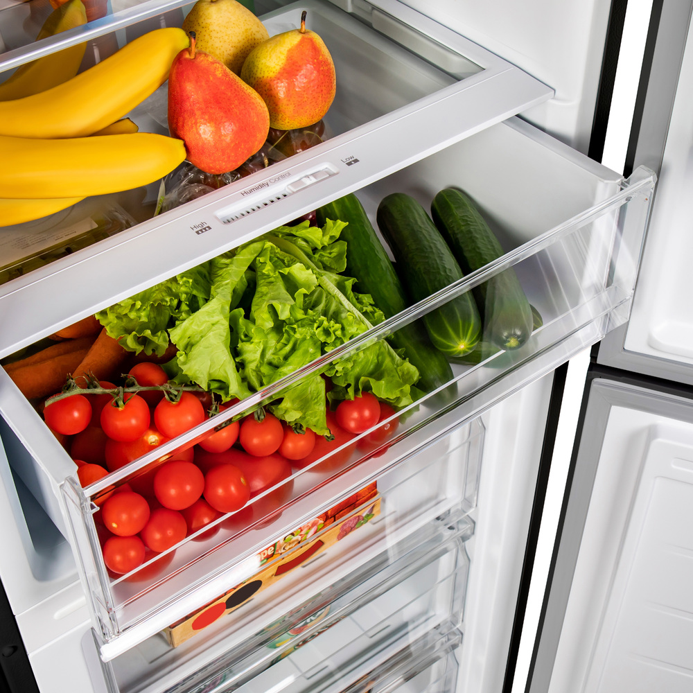 Холодильник Maunfeld MFF185SFSB имеет размеры 59,5×185,5×59,5 см. Модель представлена в черном цвете, поэтому она будет гармонично смотреться в любом кухонном интерьере. В ее основу положен надежный и экономичный инверторный компрессор, соответствующий классу А+. Классификация по уровню энергопотребления дает объективное представление о том, насколько эффективно устройство расходует данный ресурс. Управление осуществляется с помощью сенсорных переключателей, которые будут доступны и понятны абсолютно каждому. На встроенном дисплее вы сможете видеть температуру. Объем холодильника Maunfeld MFF185SFSB составляет 252 л, холодильное отделение может включать в себя 211 л, а морозильное — 104 л. Морозилка предусматривает 3 ящика и способна замораживать продукты до 5 кг. Данная техника идеально подойдет для семьи из 3-4 человек и вместит в себя все необходимые запасы. Прибор работает очень тихо: громкость издаваемых им звуков не превышает 39 дБ, поэтому его работа не помешает вашему разговору на кухне.