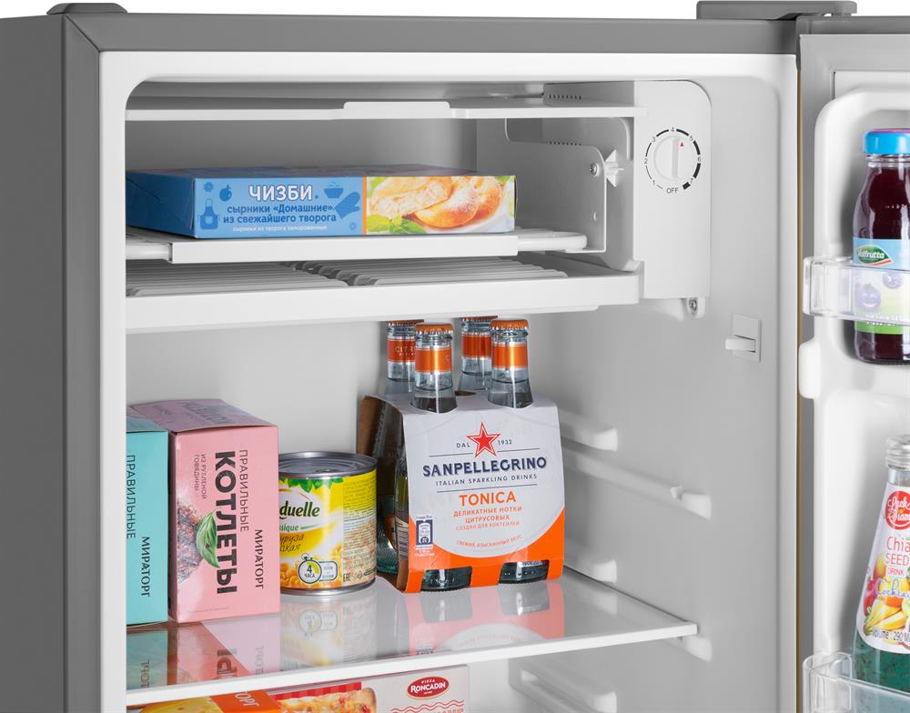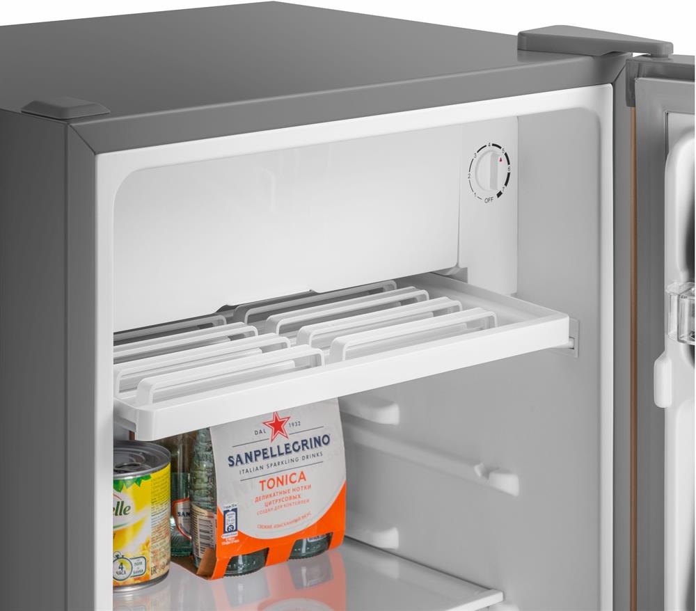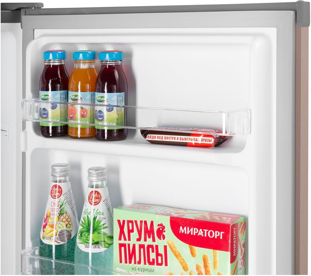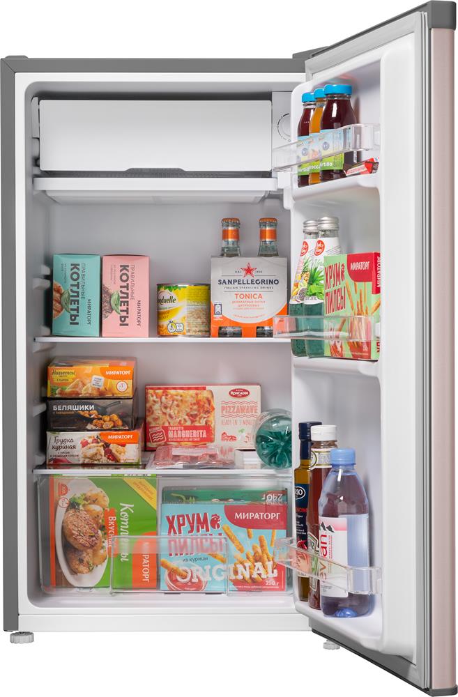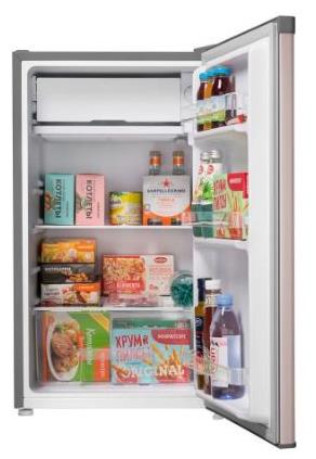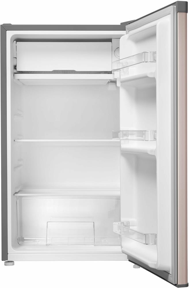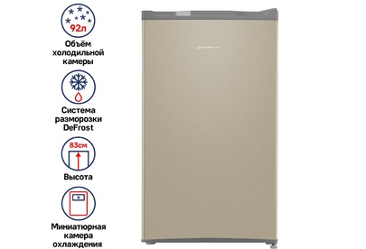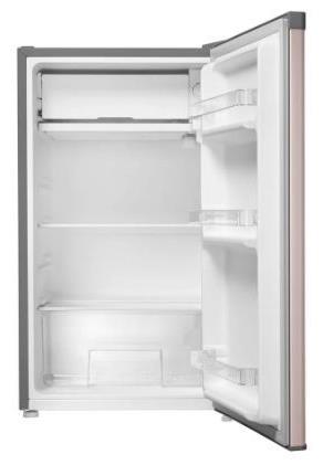 Размеры (ШхВхГ): 47 х 83.1 х 44.7 см * Цвет золотистый/серый * Общий объём, л: 92 Полезный объём, л: 85. Общий объем морозильного отделения, л 7 * Система разморозки: Ручная * Тип компрессора: Стандартный * Уровень шума, дБ: 40 * Энергопотребление, кВтч/год: 113 * Класс энергетической эффективности: A+ * Количество полок холодильной камеры: 1 Количество боковых полок: 3 * Материал фасада: Эмаль * Материал корпуса: Металл * Перенавешиваемые двери * Хладагент R: 600а * Климатический класс: SN, N, ST, T * Климатический класс: ST * Вес товара без упаковки (нетто), кг: 19 * Страна: Китай *
