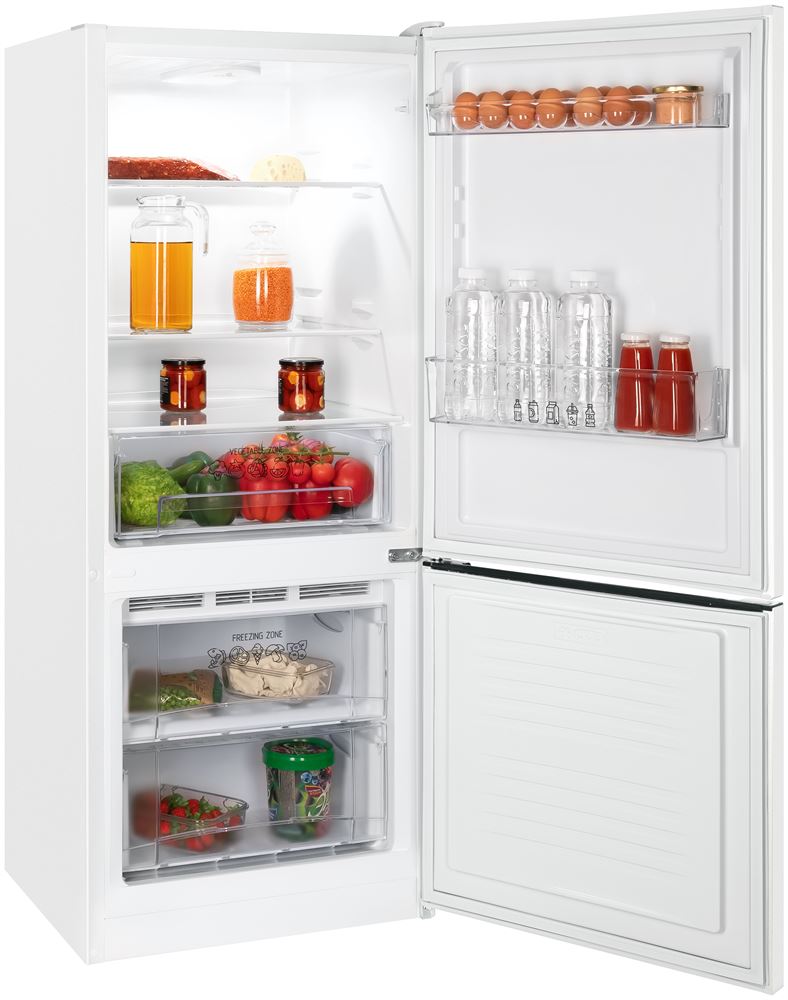(ВхШхГ)150х57х63см. Цвет белый.Общий объем, л 240.Объем холодильной камеры (ХК), л170.Объем морозильной камеры (МК), л70.Класс энергоэффективности A+.Температура в ХК0°С...+8°С.Количество полок ХК3.Тип полок в ХК закаленное стекло.Ящик для овощей ХК1.Освещение в ХК LED-подсветка.Система оттаивания ХК автоматическая (капельная).Полки на двери ХК 2.Температура в МК не выше -18°С.Количество выдвижных ящиков в МК2.Система оттаивания МК ручная Производительность замораживания, кг/сут 2,5.Хладагент R600a (изобутан). Суточный расход электроэнергии, кВт.час 0,682.Уровень шума, дБ 40. Перенавешиваемые двери.Ручки интегрированные горизонтальные.Испаритель запененный.