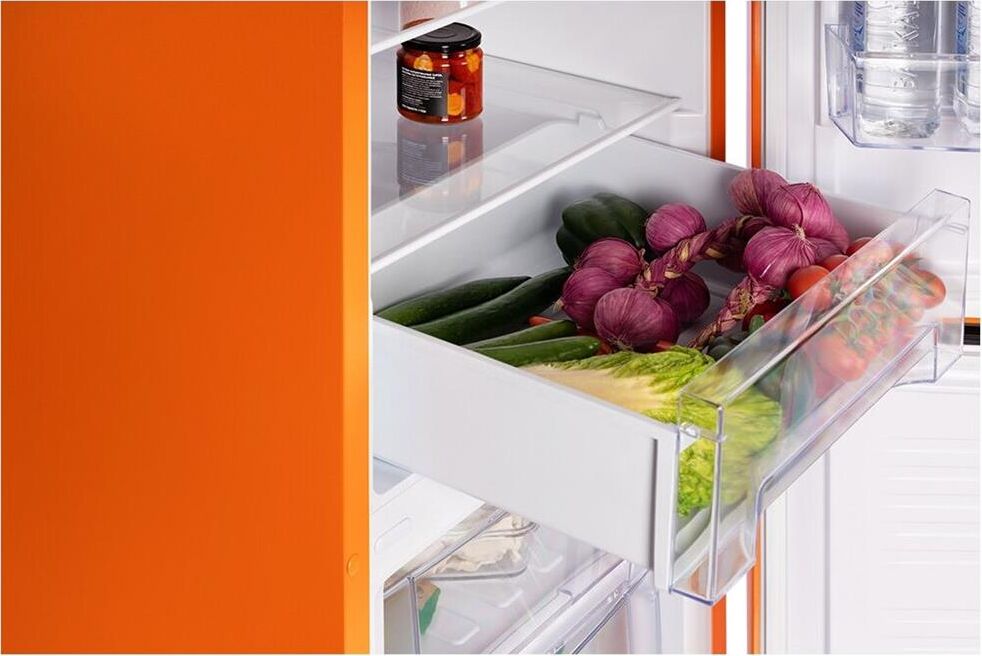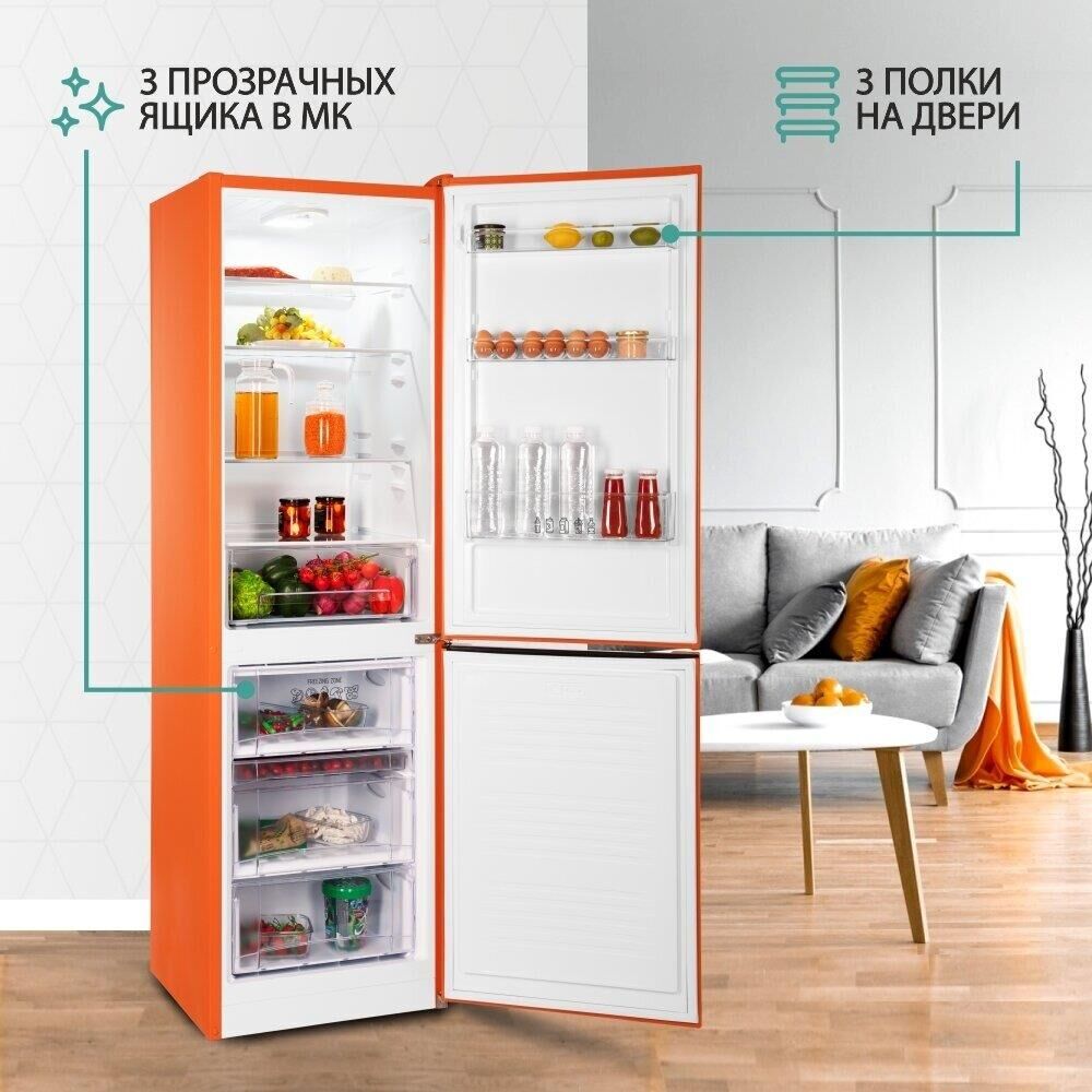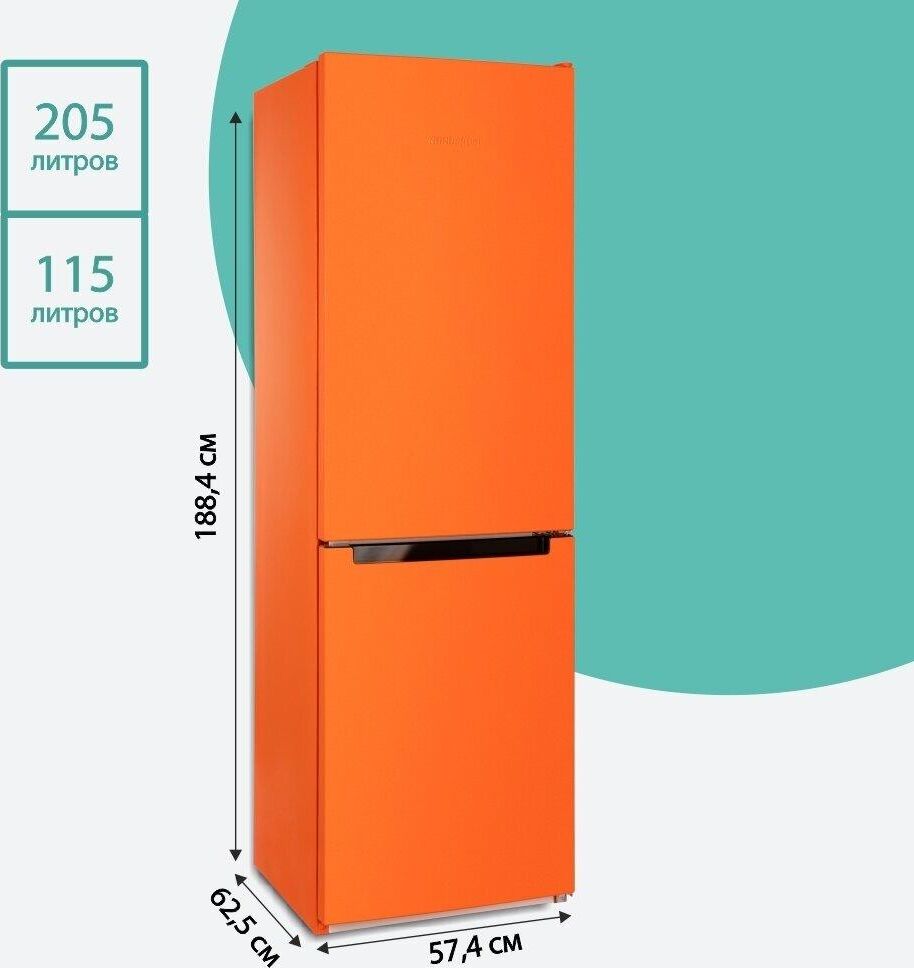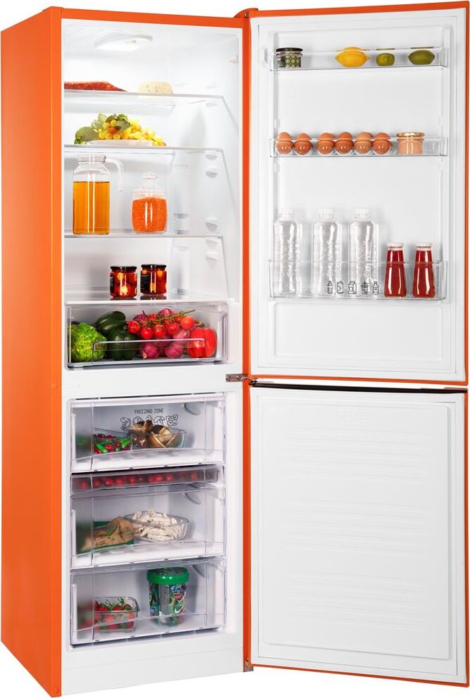 (ВхШхГ)188х57х63см. Цвет оранжевый.Общий объем, л 320.Объем холодильной камеры (ХК), л205.Объем морозильной камеры (МК), л 115.Вес Нетто, кг 63.Класс энергоэффективности A+.Температура в ХК0°С...+8°С.Количество полок ХК 4.Тип полок в ХК закаленное стекло.Ящик для овощей ХК1.Освещение в ХК LED-подсветка.Система оттаивания ХК автоматическая (капельная).Полки на двери ХК 3.Температура в МК не выше -18°С.Количество выдвижных ящиков в МК 3.Лоток для ягод в МК1.Система оттаивания МКручная.Производительность замораживания, кг/сут4,5.Хладагент R600a (изобутан).Суточный расход электроэнергии, кВт.час0,827.Уровень шума, дБ40.Перенавешиваемые двери. Ручки интегрированные горизонтальные.Испаритель запененный.