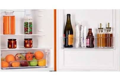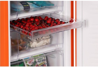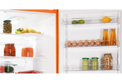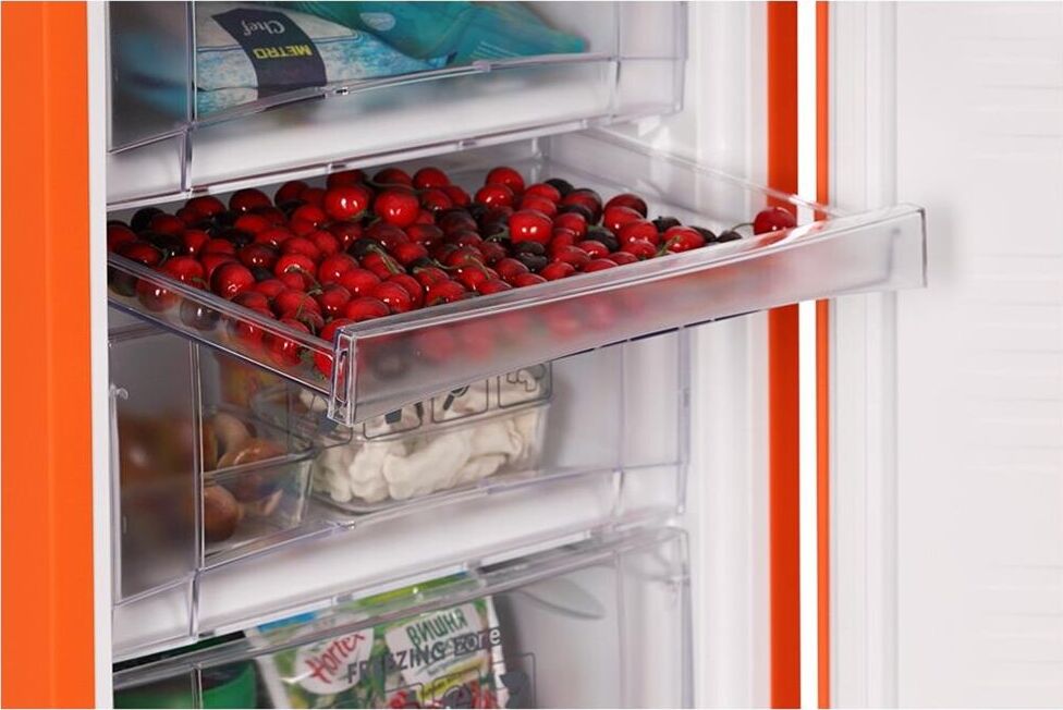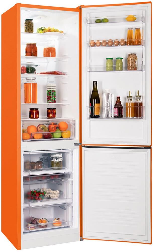 (ШхВхГ)57х203х62 см.Цвет оранжевый.Общий объем 353 л.Объем холодильной камеры 238 л.Объем морозильной камеры 115 л.Мощность замораживания 4.5 кг/сут.Минимальная температура в морозильной камере -18.Автономное сохранение холода 10 ч.Тип управления электромеханическое.Размораживание морозильной камеры ручное.Размораживание холодильной камеры капельная система.Энергопотребление 316.46 кВтч/год.Класс энергопотребления A+. Климатический класс N, ST, T.Особенности конструкции перевешиваемые двери, антибактериальное покрытие.