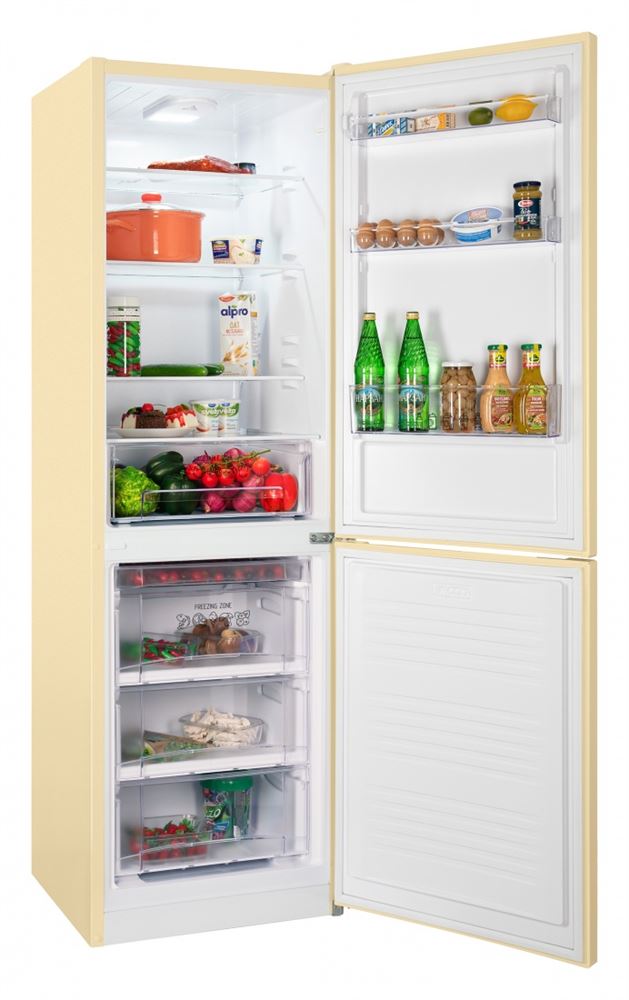 Двухкамерный отдельностоящий холодильник NORDFROST NRB 162NF с нижним расположением морозильной камеры имеет общий объем 310 л. Модель выполнена в стильном и лаконичном дизайне. Холодильник высотой 188 см подойдет в интерьер, как современной, так и классической кухни. Модель с системой охлаждения Frost Free сочетает капельную систему оттаивания в холодильном отделении и систему размораживания No Frost в морозильном. Воздух, циркулирующий в камерах, не смешивается, благодаря чему показатели температуры и влажности остаются неизменными и комфортными для лучшего сохранения продуктов. Морозильная камера объемом 105 л имеет мощность заморозки до 3,5 кг в сутки. На стенках морозильника не образовывается наледь и иней, что навсегда избавит пользователя от ручного размораживания. Холодильник характеризуется высоким классом энергоэффективности А+ и низким уровнем шума до 41 дБ. Холодильник оснащен LED-освещением в холодильной камере, которое не выделяет тепло во внутреннее пространство холодильника, а также отличается