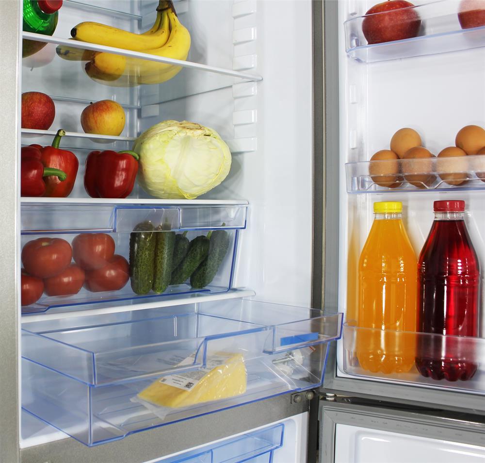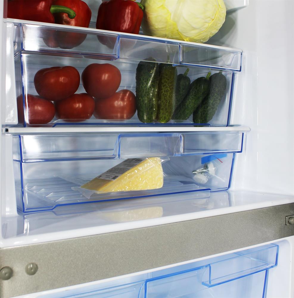 Холодильник с нижней морозильной камерой. Объём 340 л (220/120). Потребляемая мощность 100 Вт. Класс энергетической эффективности А.