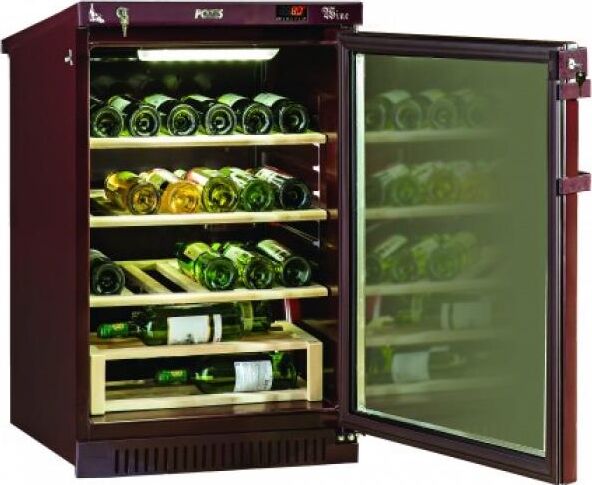 Габариты (В*Г*Ш) 60x61x91см однокамерный общий объем 140л Количество компрессоров, шт. 1 Номинальный потребляемый ток, А 0.35 Напряжение, В 220 Холодильная камера Температура в холодильной камере, °C 5...18 Количество полок/сосудов в камере, шт. 3 Суточный расход электроэнергии, кВт/ч 0,548 Материал полок в камере дерево Предназначен для демонстрации и хранения при заданной температуре охлажденных вин. Особенности и дополнительные элементы: полки 2 штуки и одна подставка (дерево), вместимость до 42 бутылок вина, микропроцессорный регулятор температуры со сверхчувствительным датчиком, возможность регулирования температуры на внешней панели управления, световая индикация режима работы, электронный блок управления, дверь-стеклопакет с тонированным покрытием против проникновения УФ-лучей с замком, автоматическое поддержание температуры в камере.