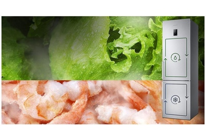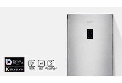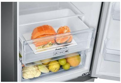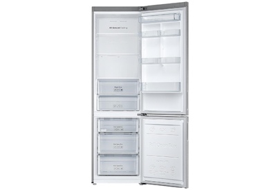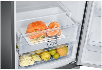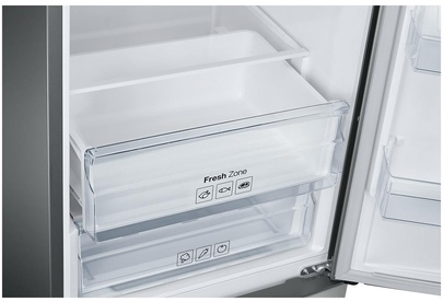 Холодильник двухкамерный. Общий объем холодильника 387 л. Габариты Ш/В/Г 59,5/201/64,7 см. Полезный объем холодильника 367 л. Тип управления электронное. Дисплей внешний. Климатический класс N, SN, ST, T. Общий объем холодильной/морозильной камеры 269/118л. Система размораживания холодильной и морозильной камеры No Frost. Количество полок 3шт стекло. Зона свежести. Мощность замораживания 12кг/сут. Класс энергопотребления А+. Инверторный компрессор. Перевешиваемые двери. Индикация температуры. Индикация открытой двери. Регулируемые по высоте ножки. Материал дверей металл. Технология многопоточного охлаждения All-Around Cooling. Цвет серый. Вес 71кг.
