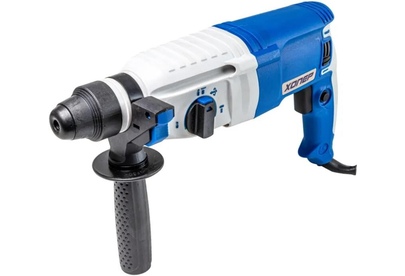 SDS-plus, режимы работы - сверление , сверление с ударом, удар, 1000Вт,максимальный диаметр сверления по бетону -26мм, частота вращения 1100 об/мин, кейс