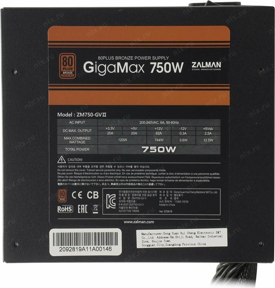 ZALMAN Блок питания ATX 750W ZM750-GVII