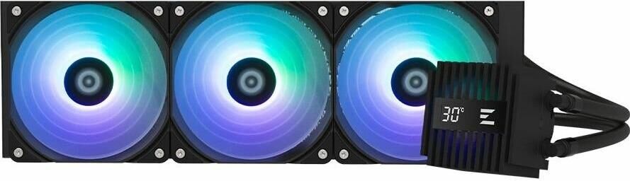 Тип компонента: помпа. Количество вентиляторов: 3. Размер вентилятора: 120. Материал радиатора: алюминий. Тип поставки: Ret. Цвет подсветки: многоцветная. Особенности: 3 pin для подключения подсветки. Макс, рассеиваемая мощность (TDP, Вт): 350. Материал основания прилегающего к охлаждаемому устройству: медь. Питание вентилятора от материнской платы: 4-pin. Потребляемое напряжение вентилятора: 12. Термопаста в комплекте: есть. Габариты упаковки (ед) ДхШхВ: 0.45x0.22x0.13. Вес упаковки (ед): 2.62. Тип подсветки: ARGB. Цвет: черный. ЖК дисплей: есть. Длина радиатора: 397. Толщина радиатора: 27. Ширина радиатора: 120. Гарантия: 36 мес.. Скорость вращения вентилятора: 600 - 2000 об/мин. Скорость вращения помпы: 3000 об/мин. Тип подшипника: Hydro Bearing. Тепловые трубки: без тепловых трубок. Потребляемое напряжение помпы: 12 В. Воздушный поток вентилятора: 69.12 cfm. Уровень шума вентилятора: 29.7 дБ. Особенности системы охлаждения: PWM, индикатор температуры, подсветка. Дополнительные особенности: цельное основан
