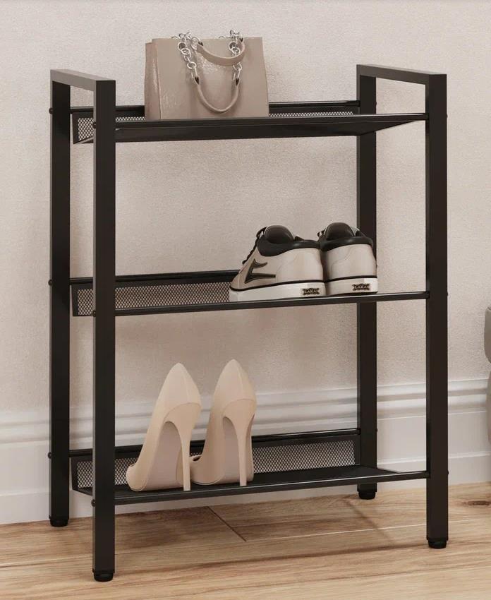 Изделие предназначено для хранения обуви в помещениях. Разборно - сварной каркас состоит из стальной профильной трубы. Полки изготовлены с использованием просечно-вытяжного металлического листа. Допустимая нагрузка на каждую полку 8 кг.