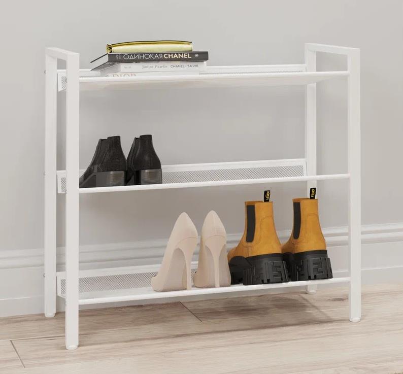 Изделие предназначено для хранения обуви в помещениях. Разборно - сварной каркас состоит из стальной профильной трубы. Полки изготовлены с использованием просечно-вытяжного металлического листа. Допустимая нагрузка на каждую полку 8 кг.