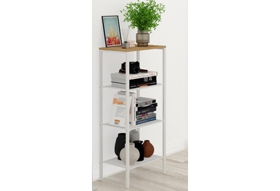 Изделие предназначено для хранения домашних и офисных предметов. Представляет собой стеллаж с 4 полками, выполненными из просечно-вытяжного листа и верхней полки из ЛДСП. Разборный каркас состоит из стальной профильной трубы 15х25 мм. В комплект входят регулируемые пластиковые опоры. Все изделие окрашено однотонной, порошковой краской. Допустимая нагрузка на полки до 8 кг.
