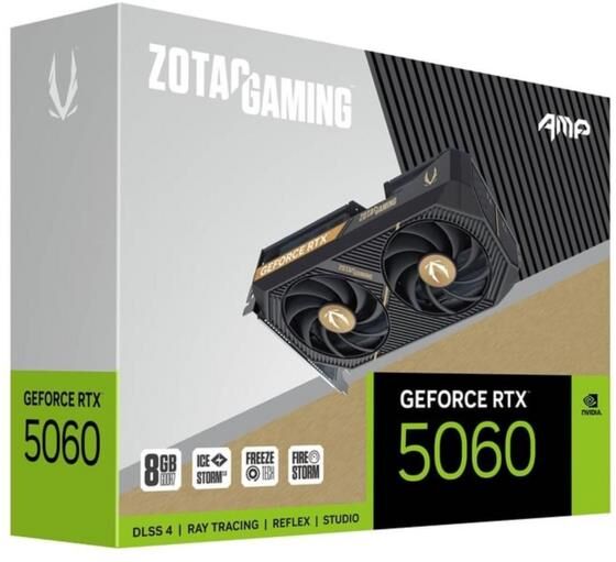 ZOTAC Видеокарта NVIDIA GeForce RTX 5060 RTX 5060 AMP 8ГБ AMP, GDDR7, Ret [zt-b50600f-10m]