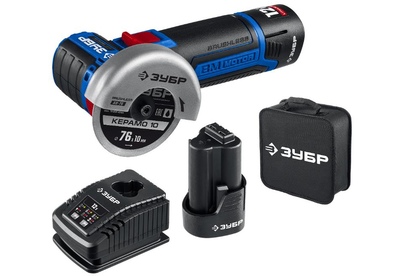 ЗУБР AB-76-22 12В бесщеточная УШМ, 2 АКБ (2Ач), в сумке, Профессионал