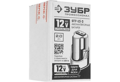 ЗУБР Батарея аккумуляторная Профессионал, 12В, 2Ач, Li-Ion [st7-12-2]