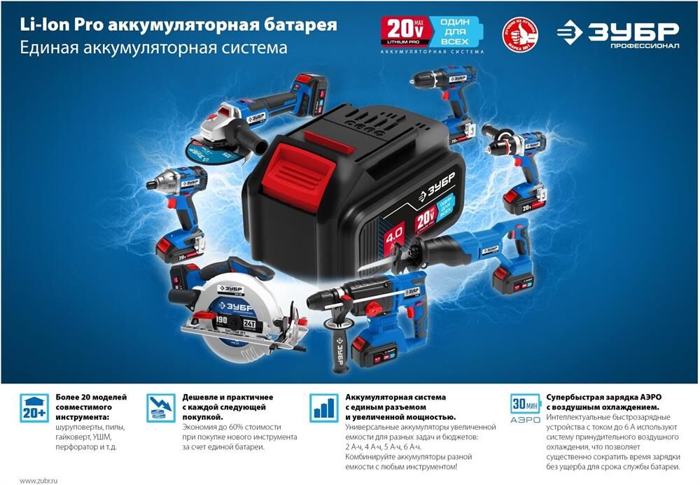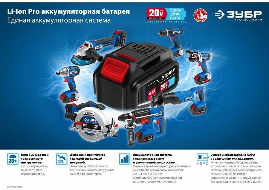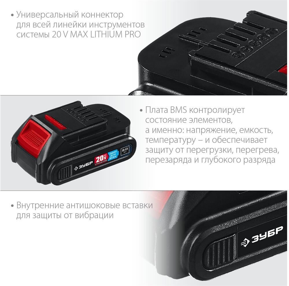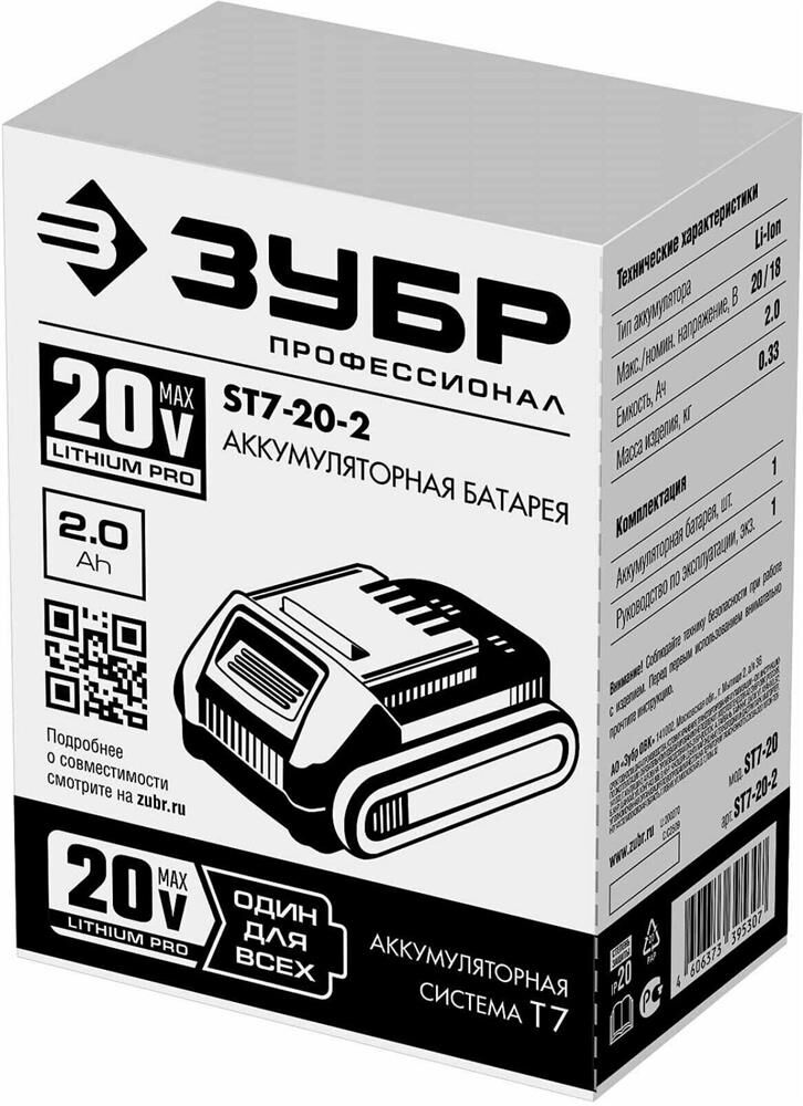 ЗУБР Батарея аккумуляторная Профессионал, 20В, 2Ач, Li-Ion [st7-20-2]