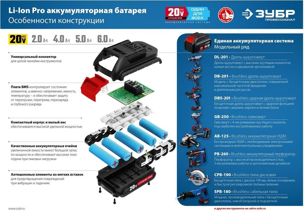 Напряжение: 20. Емкость: 2. Вес: 330. Тип аккумулятора: Li-Ion. Устройство аккумулятора: Слайдер. Назначение: для электроинструмента. Функция быстрой зарядки: ДА. Совместимость: для Зубр DL-20 A5, DB-20 A5, DL-201, DB-201, DB-211, DBS-201, GB-250, GVB-250, GB-500, AB-125. Циклов заряд/разряд: 500. Количество аккумуляторов в комплекте: 1. Габариты упаковки (ед) ДхШхВ: 0.12x0.08x0.06. Вес упаковки (ед): 0.2. Страна производства: Китай. Гарантия: 12 мес.. Назначение: для электроинструмента. Напряжение: 20 В. Вес: 330 грамм. Тип аккумулятора: Li-Ion. Емкость: 2 Ач. Устройство аккумулятора: Слайдер