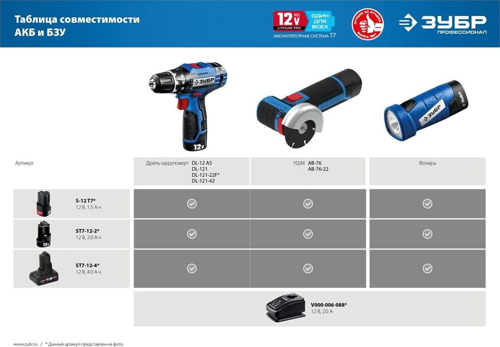 ЗУБР Батарея аккумуляторная Профессионал 12В 2Ач Li-Ion (ST7-12-2)