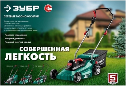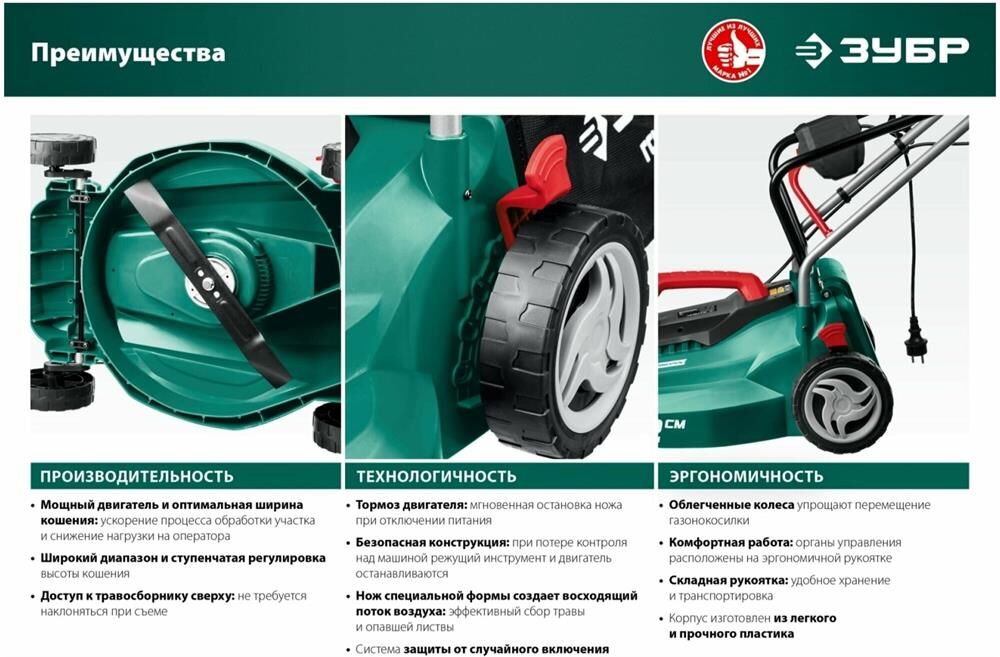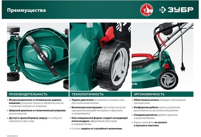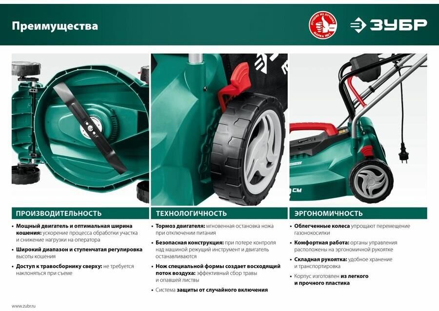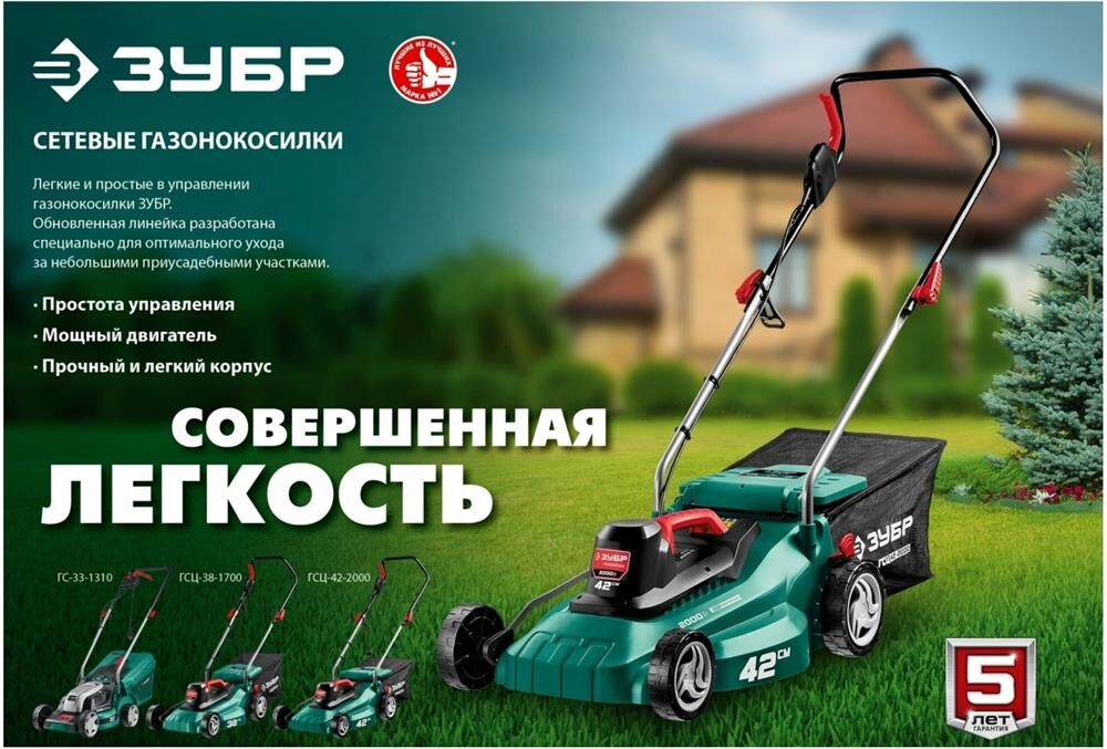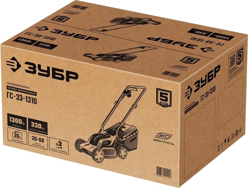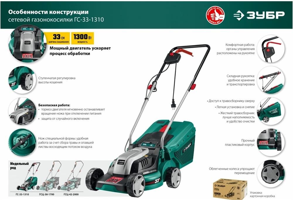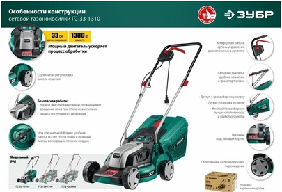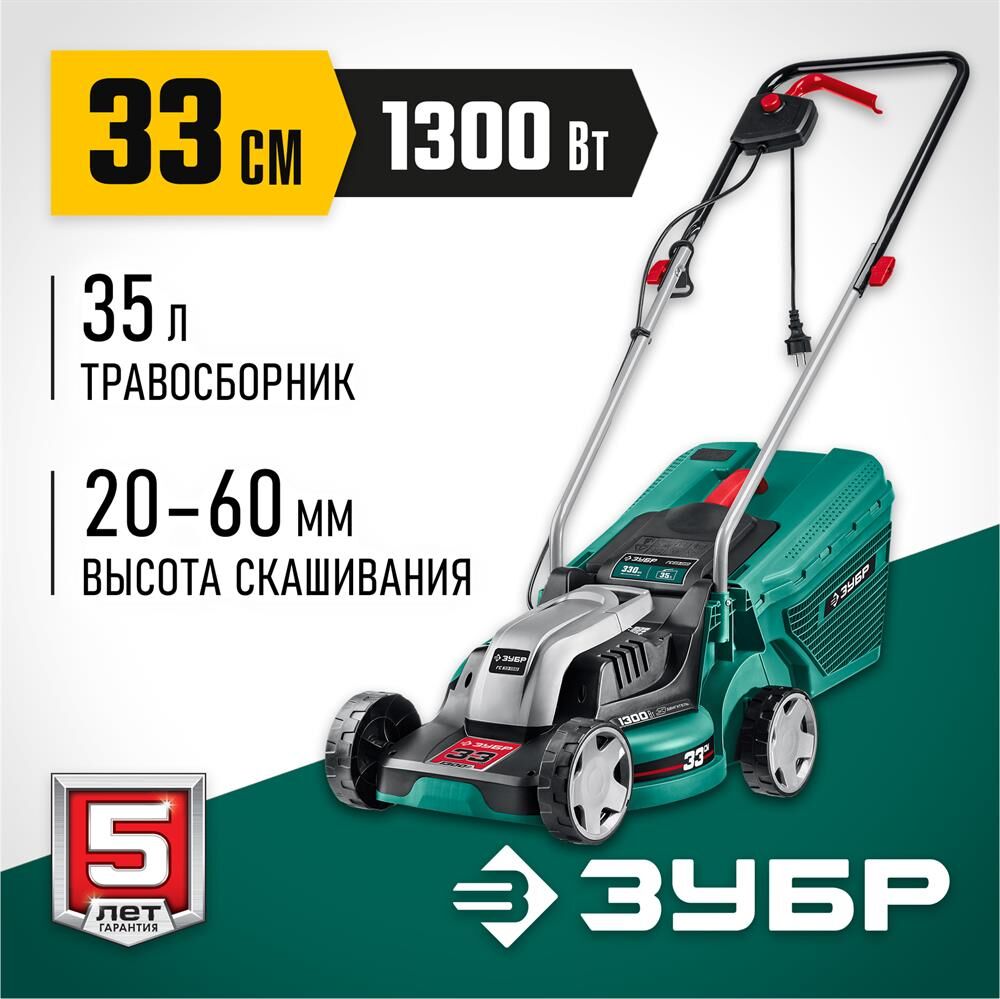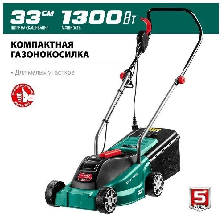 ЗУБР Газонокосилка электрическая ГС-33-1310, 33см, несамоходная