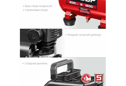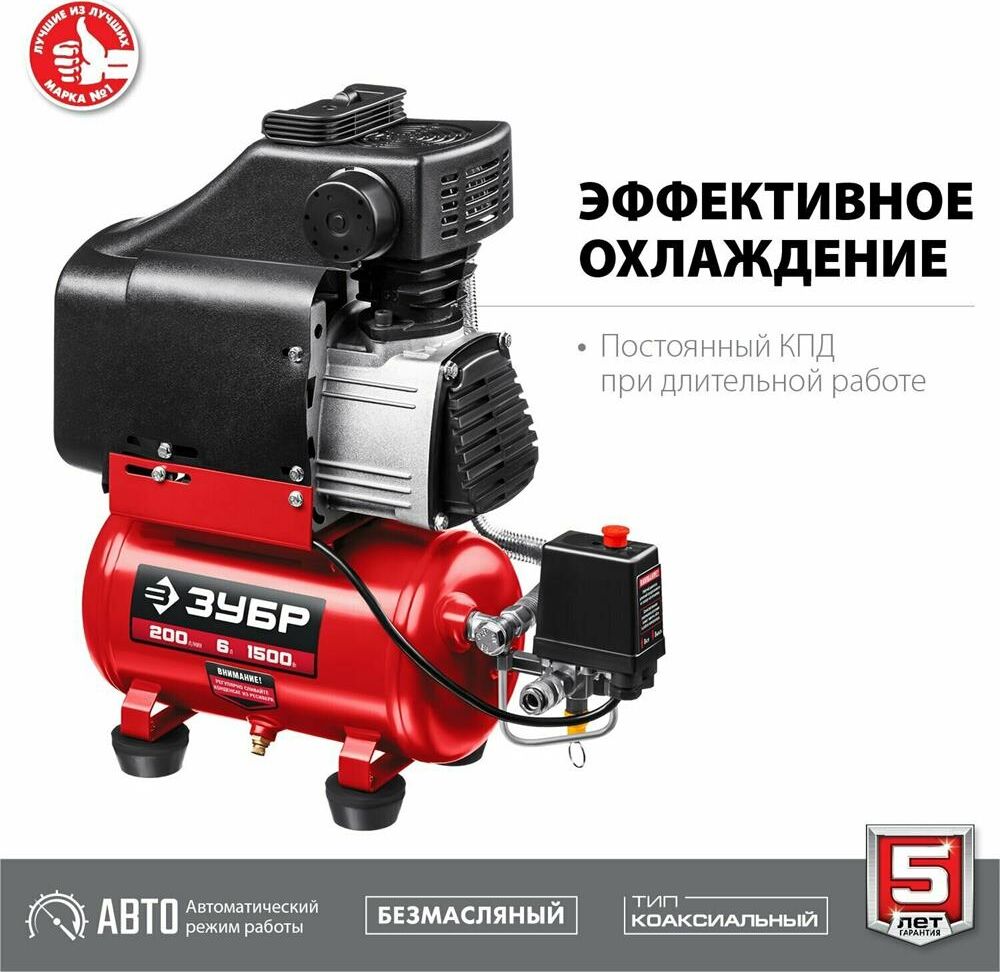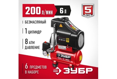ЗУБР КП-200-6 Компрессор воздушный безмасляный