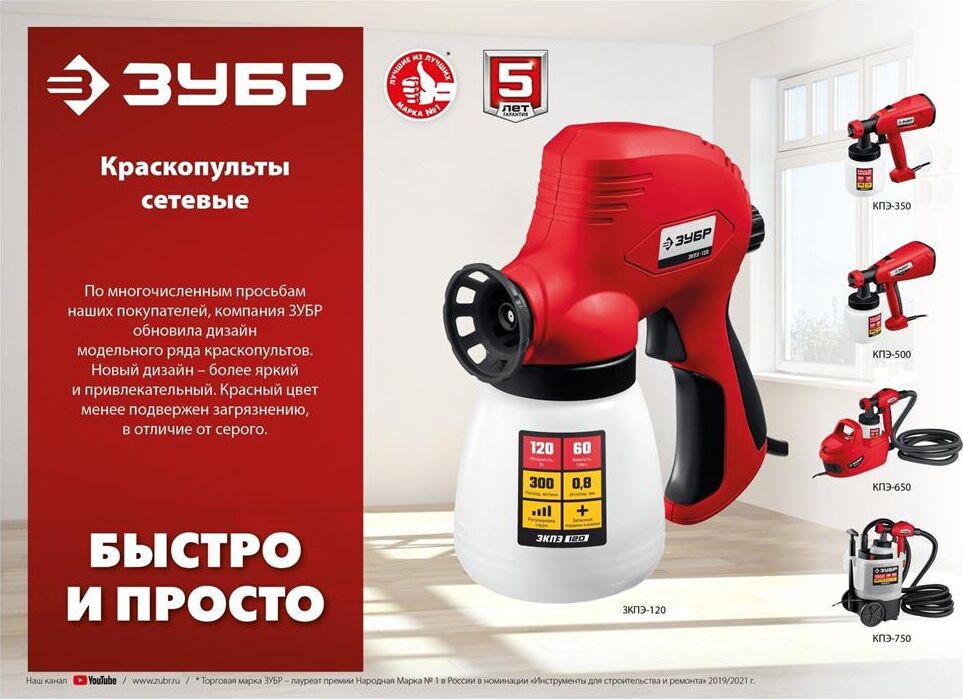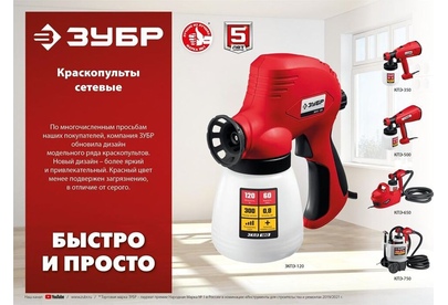 ЗУБР КПЭ-650 Краскопульт электрический, компрессорный, 650 Вт