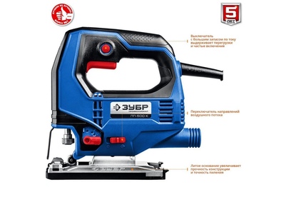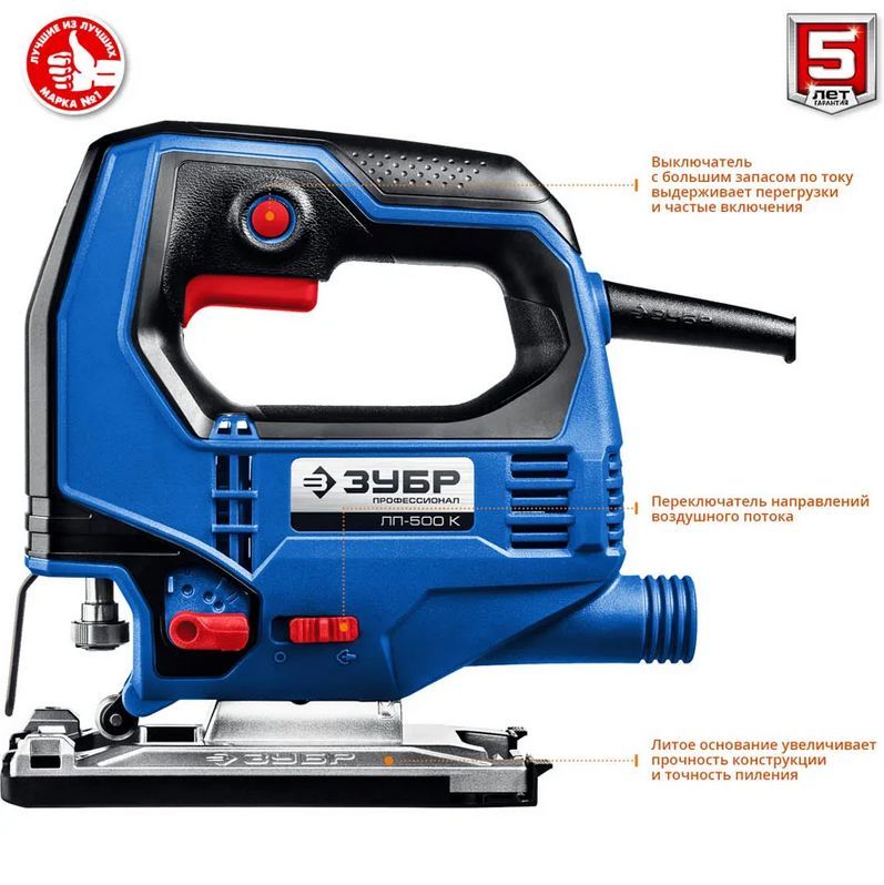 Электрический лобзик Зубр Профессионал ЛП-500 К служит для продольного, поперечного и фигурного пиления древесины, фанеры, ДСП, пластмассы. Имеет маятниковый ход, что ускоряет выполнение рабочих операций. Мощный двигатель с медной обмоткой обладает высокой перегрузочной способностью. Электронная регулировка частоты ходов позволяет подобрать оптимальный рабочий режим для каждого материала. Благодаря переключению между обдувом зоны реза и отводом опилок в пылесос достигается лучший обзор линии реза. Литая подошва с регулировкой угла пропила ±45 градусов. Технические характеристики Зубр Профессионал ЛП-500 К Вес, кг 2,1 Мах толщина пропила (дерево), мм 65 Мах толщина пропила (металла), мм 6 Мощность, Вт 500 Наличие быстр. зам. пилки есть Наличие подсветки нет Регулировка оборотов есть Форма ручки Скобовидная Тип С маятниковым ходом Длина кабеля, м 3 Наличие лазера нет Наличие плавного пуска нет Литая подошва да
