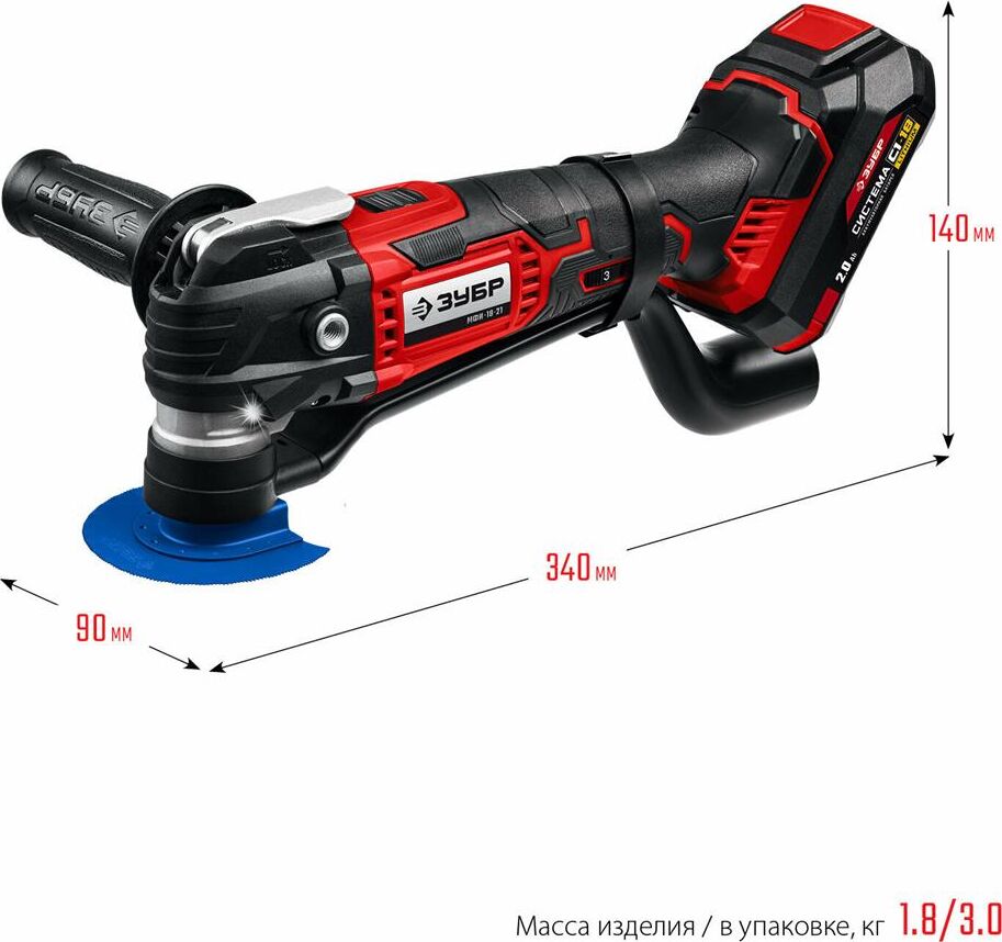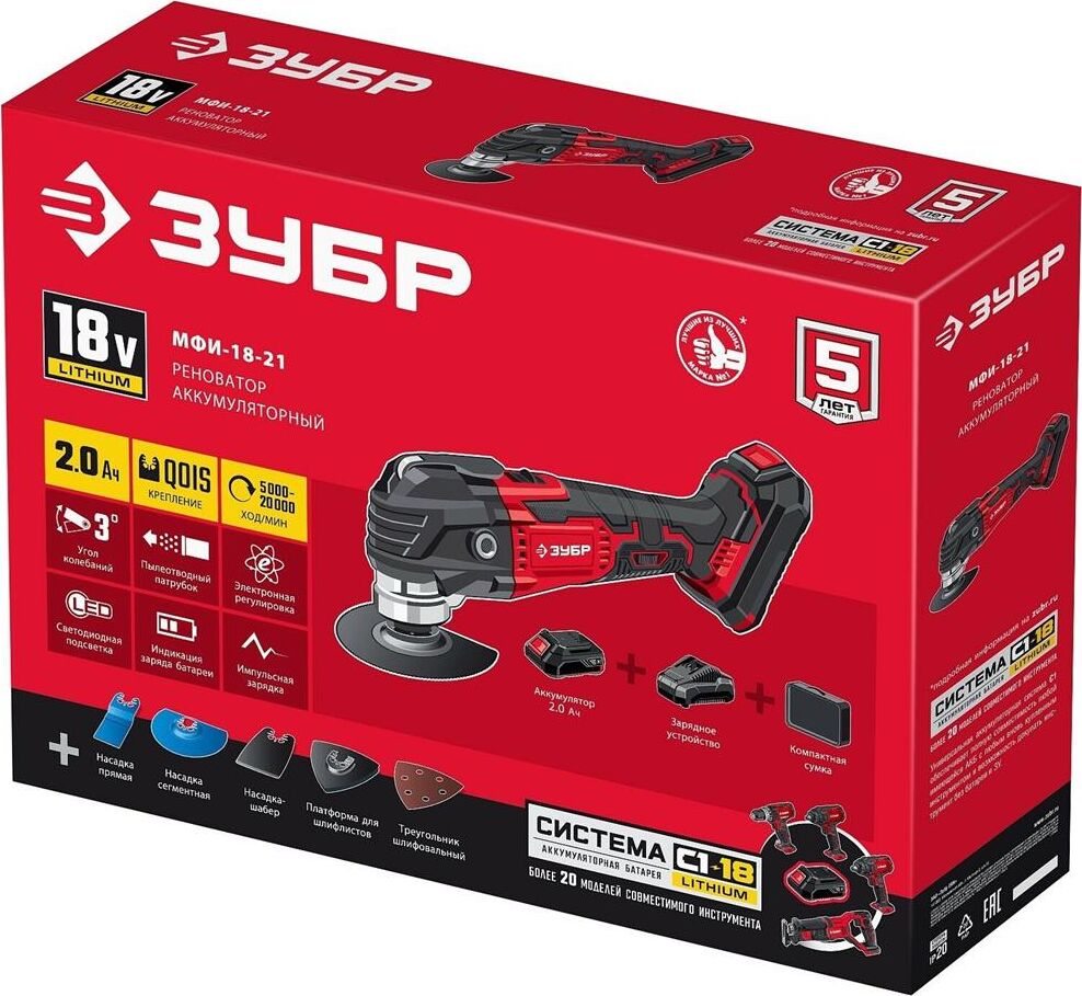 ЗУБР Многофункциональный инструмент МФИ-18-21 черный/красный