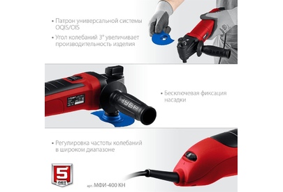 Мощность: 400. Крепление рабочего шлифматериала: OIS/OQIS. Регулировка частоты колебаний: есть. Угол колебания влево/вправо: 3. Сегментированный пильный диск в комплекте: есть. Пильное полотно в комплекте: есть. Дельташлифпластина в комплекте: есть. Дополнительно в комплекте: Шабер, универсальная прямая пильная насадка, шлифовальная подошва, наждачная бумага - 3 шт., сегментное пильное полотно 88 мм, рукоятка дополнительная.. Рукоятка с мягкой накладкой: есть. Цвет: красный. Дополнительный цвет: черный. Тип электропитания: от электросети. Габариты упаковки (ед) ДхШхВ: 0.33x0.26x0.091. Вес упаковки (ед): 1.18. Тип электрического двигателя: щеточный. Страна производства: Китай. Класс инструмента: бытовой. Защита двигателя от перегрева: нет. Защита от непреднамеренного включения: нет. Кейс в комплекте: есть. Количество насадок в комплекте: 3. Комплект поставки: Реноватор, шабер, универсальная прямая пильная насадка, шлифовальная подошва, наждачная бумага - 3 шт., сегментное пильное полотно 88 мм., рукоятка допол