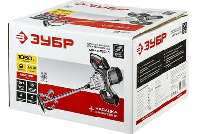 Строительный миксер Зубр МАСТЕР МР-1050-1 предназначен для размешивания красок, лаков, клеев, строительных растворов и смесей. Две рабочих скорости и электронная регулировка оборотов способствуют оптимальной настройке инструмента под конкретные рабочие нужды. Для быстрого доступа к угольным щеткам предусмотрена сервисная крышка. Технические характеристики Зубр МАСТЕР МР-1050-1 Вес, кг 4,2 Мощность, Вт 1050 Длина кабеля, м 2 Число скоростей, шт 2 Наличие реверса нет Электр. регулировка оборотов есть Патрон М14 Количество венчиков 1 Комплектация коробка Плавный пуск нет Морозоустойчивый кабель да Частота вращения шпинделя, об/мин 0-500/0-700