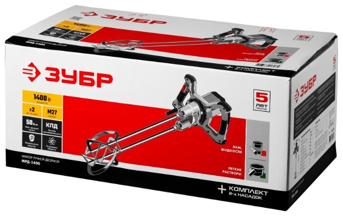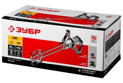 Ручной электрический миксер ЗУБР МАСТЕР МРД-1400 подходит для перемешивания различных строительных материалов: бетона, штукатурки, плиточных и обойных клеев и т.д. Благодаря мощному двигателю и высокому крутящему моменту можно работать даже с тяжелыми смесями. Применение двух насадок одновременно увеличивает производительность и повышает качество работы. Металлический корпус редуктора обеспечивает повышенную прочность и лучший отвод тепла. Электронная регулировка числа оборотов позволяет настраивать частоту вращения в зависимости от свойств материала. Технические характеристики Зубр МАСТЕР МРД-1400 Вес, кг 7 Мощность, Вт 1400 Габариты, мм 595x330x250 Число скоростей, шт 1 Max крутящий момент , Нм 17 Наличие реверса нет Электр. регулировка оборотов есть Патрон ключевой Поддержание постоянных оборотов под нагрузкой нет Количество венчиков 2 Плавный пуск нет Морозоустойчивый кабель да Частота вращения шпинделя, об/мин 520