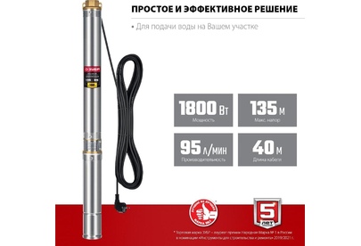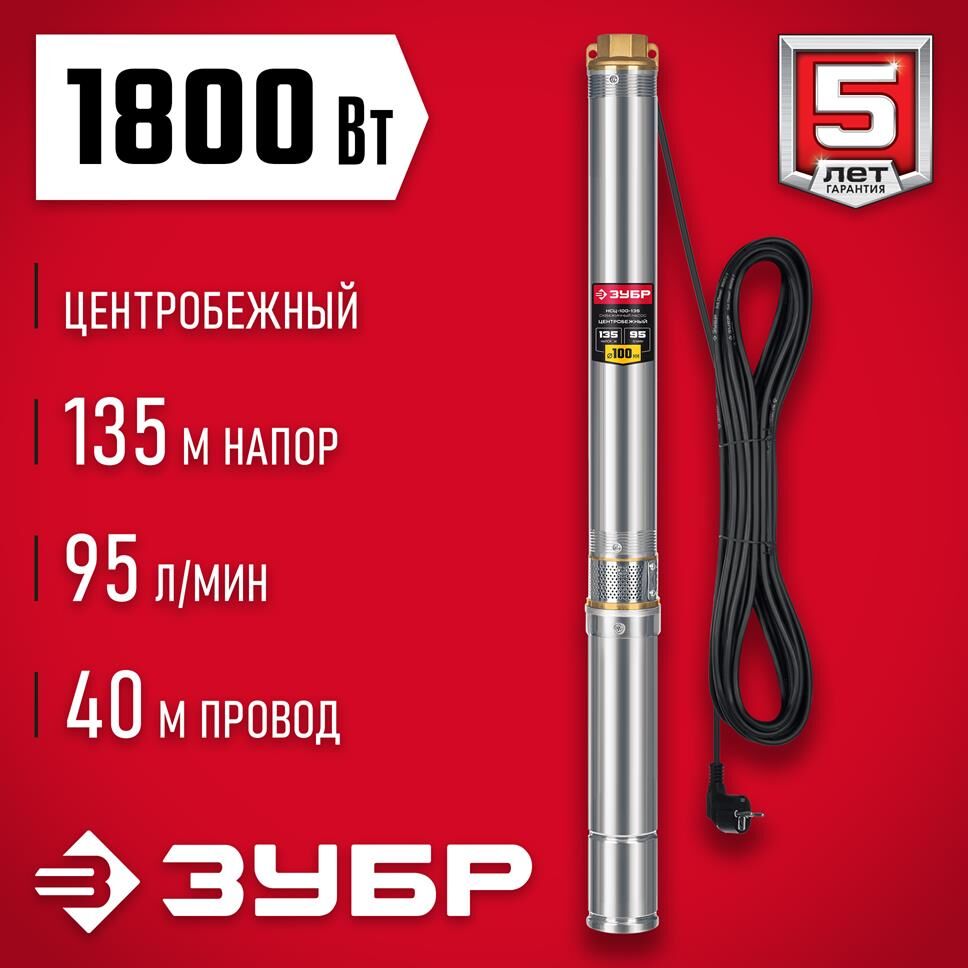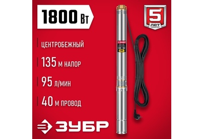 ЗУБР Насос скважинный НСЦ-100-135 1800Вт 5700л/час центробежный