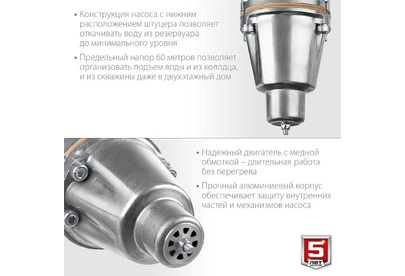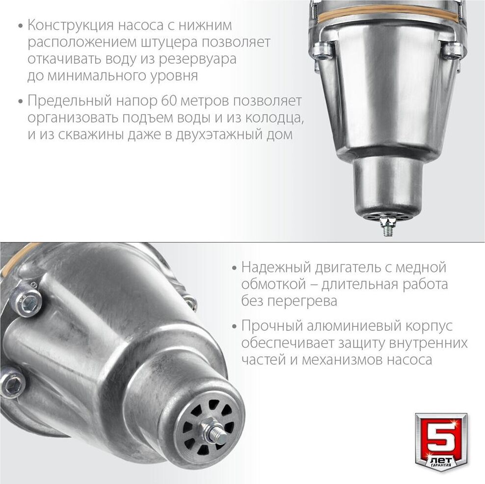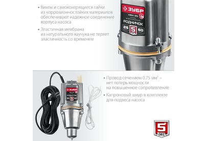 ЗУБР НВН-25 Вибрационный насос с нижним забором воды Родничок-Н, 25 м провод (БВ-0,12)