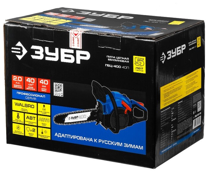 ЗУБР ПБЦ-400 40П Пила цепная бензиновая 1,5 кВт/ 2,0 л.с., 400 мм
