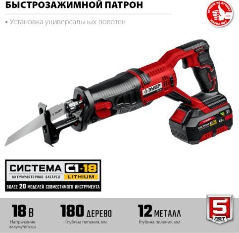 Напряжение изделия, В 18 Число ходов на холостом ходу, ход/мин 0-2600 Ход штока, мм 22 Глубина распила (дерево), мм 180 Глубина распила (металл), мм 12 Тип хвостовика полотна, дюйм 1/2 Макс. толщина полотна, мм 1.8 Тип аккумулятора Li-Ion Емкость аккумулятора, А·ч 4 Съемная батарея есть Маятниковый ход есть Регулировка глубины реза бесключевая Бесключевая замена оснастки есть Индикатор заряда батареи есть Количество аккумуляторов, шт. 1 Зарядное устройство Импульсное Время заряда батареи, ч 1