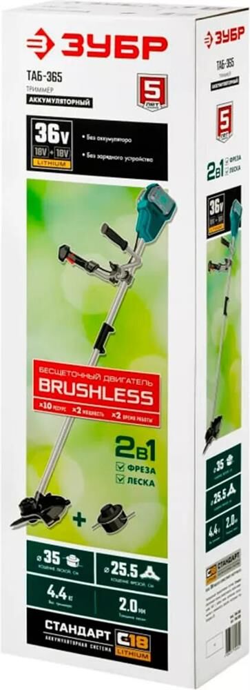 ЗУБР ТАБ-365-22 36В бесщеточный триммер, 2х18В АКБ (2Ач)