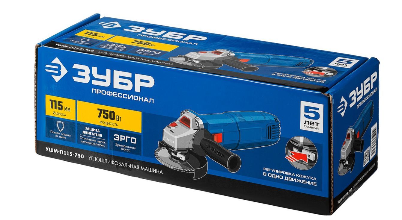 ЗУБР УШМ-П115-750 Углошлифовальная машина 115 мм, 750 Вт, серия Профессионал.