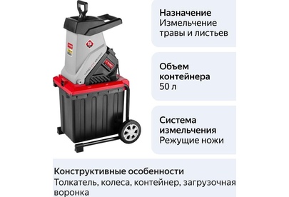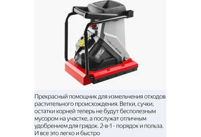 Измельчитель садовый 2500 Вт, режущий нож, 4050 об/мин. Прекрасный помощник для измельчения отходов растительного происхождения. Листья, сучки, остатки корней, скошенная трава теперь не будут бесполезным мусором на участке, а послужат отличным удобрением для грядок. 2-в-1 - порядок и польза. И все это легко и быстро