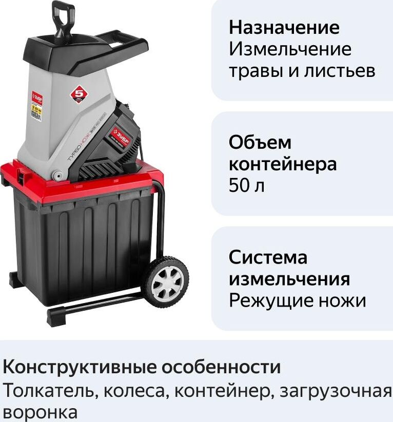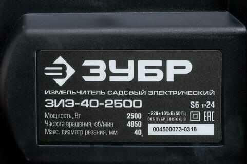 ЗУБР ЗИЭ-40-2500 Измельчитель садовый 2500 Вт, режущий нож, 4050 об/мин