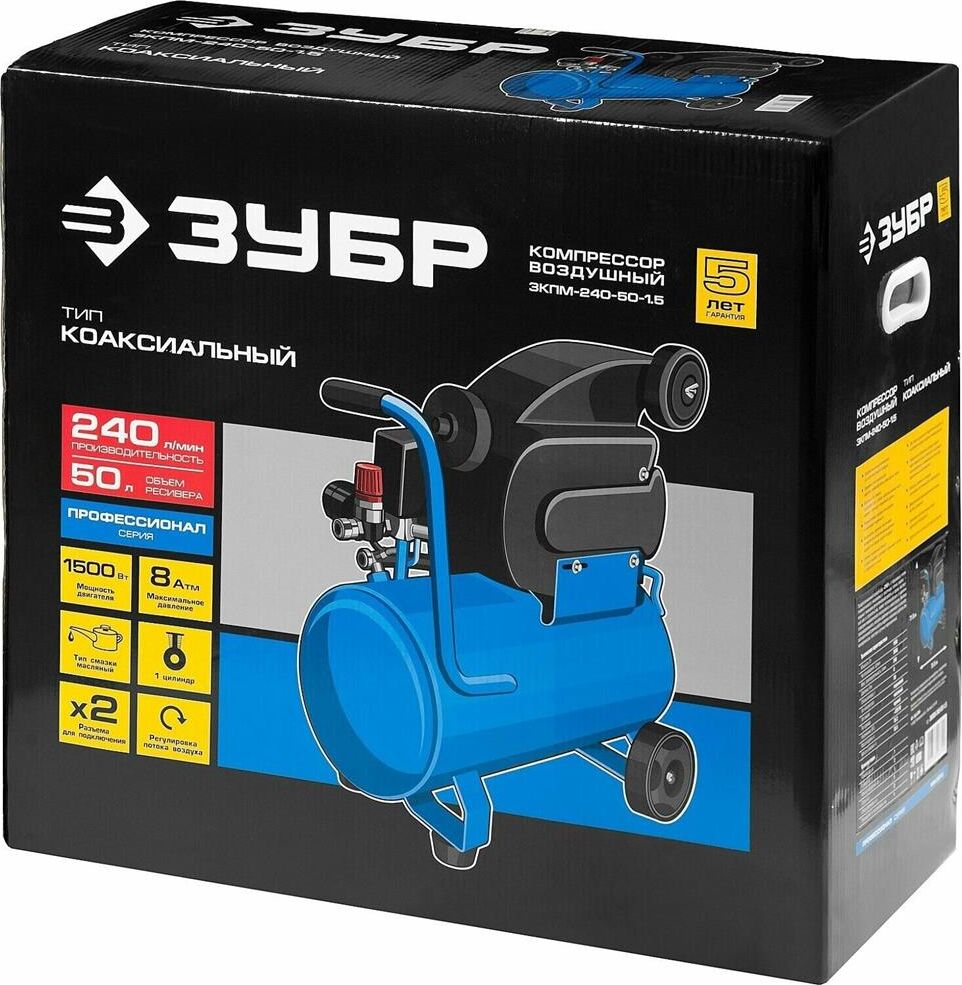 ЗУБР ЗКПМ-240-50-1.5 240 л/мин, 50 л рессивер, 1500 Вт, воздушный