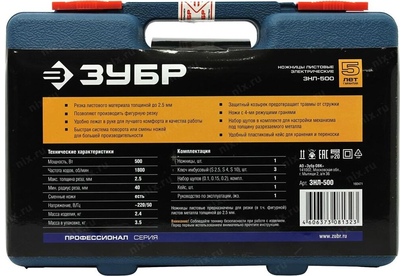 ЗУБР ЗНЛ-500 Ножницы листовые 500 Вт, 1800 об/мин