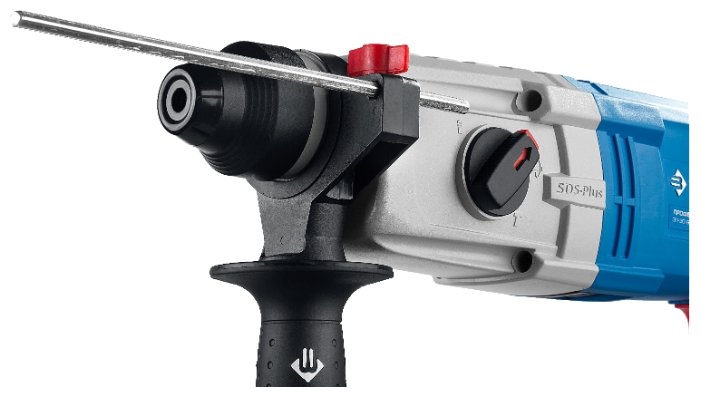 дополнительная рукоятка, ограничитель глубины сверления, блокировка кнопки включения, упаковка смазки в комплекте