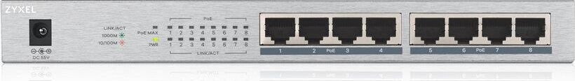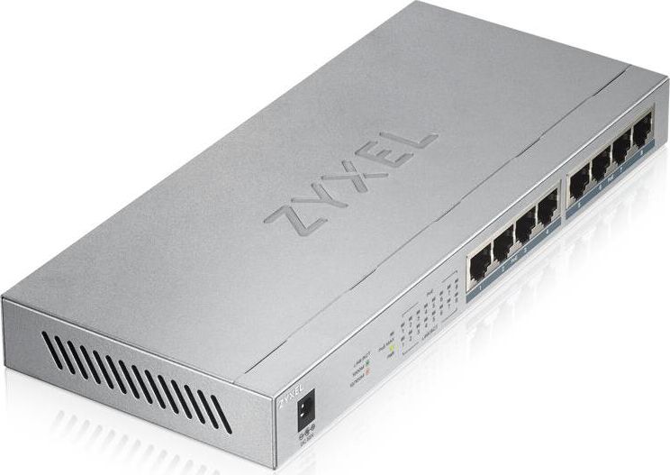 Соответствие требованиям малого бизнеса к цене и энергопотреблению коммутатора Коммутатор Zyxel GS1008HP оборудован 8 портами Gigabit Ethernet. Все 8 портов коммутатора поддерживают PoE и обеспечивают до 60 Ватт суммарного бюджета PoE. GS1008HP легко подключает к сети поддерживающие PoE периферийные устройства по модели plug-and-play и позволяет сэкономить энергию без ущерба для производительности.